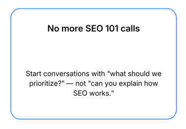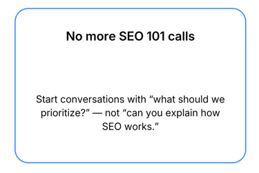 No more " SEO 101 " kind of calls or defending what you charge —just discussing growth strategy